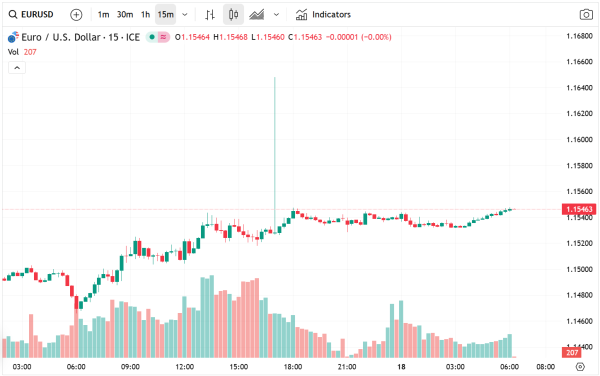 Recent price action shows what appears to be a bullish, impulsive rebound, with the pair establishing a higher low at $1.1479. This formation is technically significant, as it suggests the possibility of a short-term trend reversal or at least a corrective upward move within a broader bearish structure.